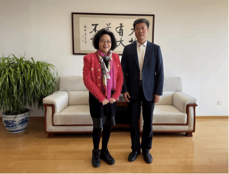 党委书记李海在颁奖仪式举办前会见程慧玲校友。